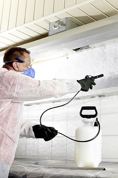 Der Schaum wird mittels eines Schaumreinigungsgerätes unter Druck manuell aufgetragen. Nach einer bestimmten Einwirkzeit verbindet sich das Fett mit dem Schaum und löst sich langsam ab. Der restliche noch haftende Schmutz lässt sich dann mit geeigneten Schwämmen oder Bürsten entfernen und fachgerecht entsorgen.